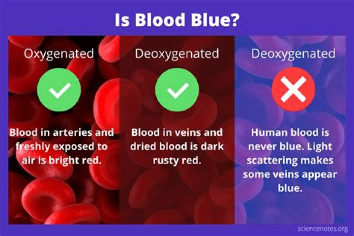 Maybe you've heard that blood is blue in our veins because when headed back to the lungs, it lacks oxygen. But this is wrong; human blood is never blue. The bluish color of veins is only an optical illusion.Is blood blue or black?